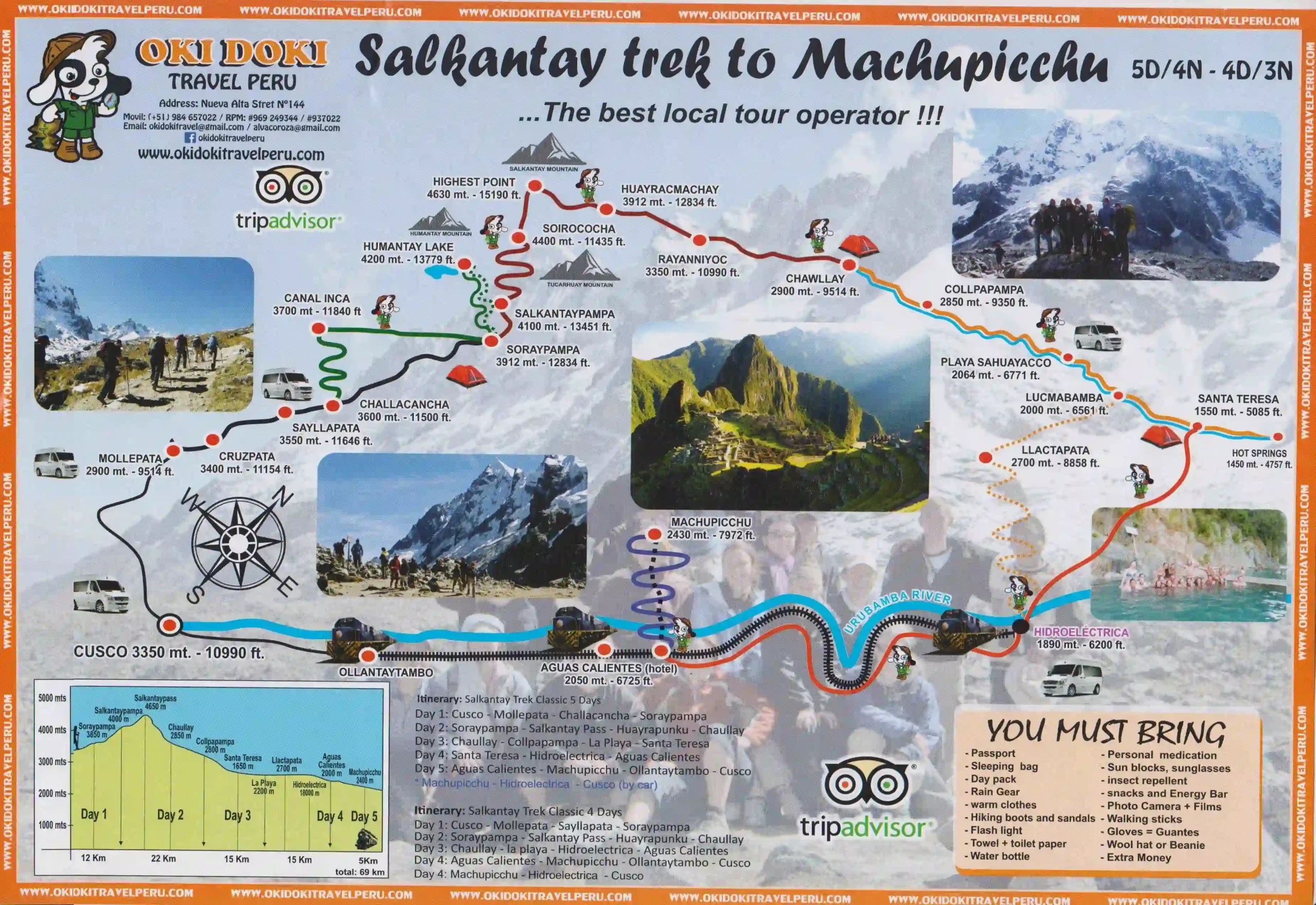 • Detailed information about your booked tour 1 day before departure at the Okidoki Travel Peru office. Location (Calle Nueva Alta # 644 in Okidoki Hostal Cusco).