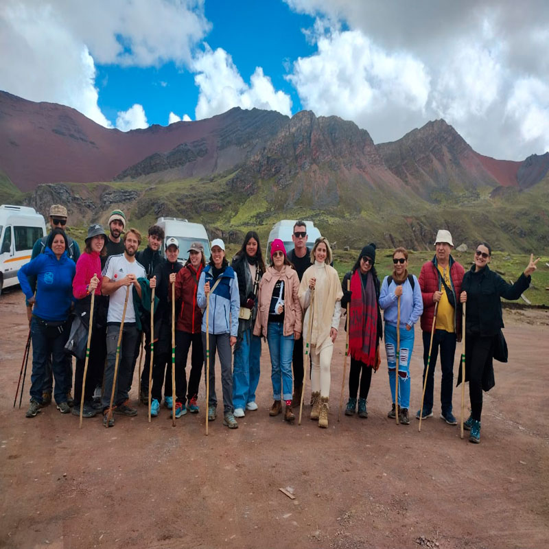 Begin an ascending hike of about 1.5 hours to reach the famous Vinicunca Pass (16,500 ft). At the top, enjoy the panoramic views of the multicolored mountain and surrounding Andean peaks. Due to the high altitude, it is cold and windy, so we limit our stay to essential photo and rest time.