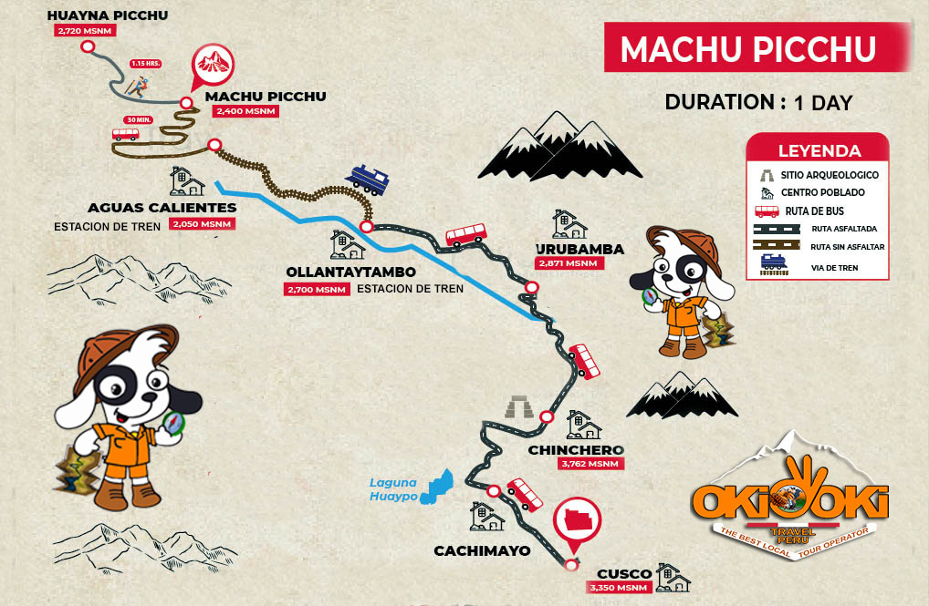 Our guide will be waiting for you at the station, and from there, you’ll take the bus up to Machu Picchu. The guided tour lasts approximately 2 hours and 30 minutes, during which you’ll explore the most important areas of the archaeological site.
