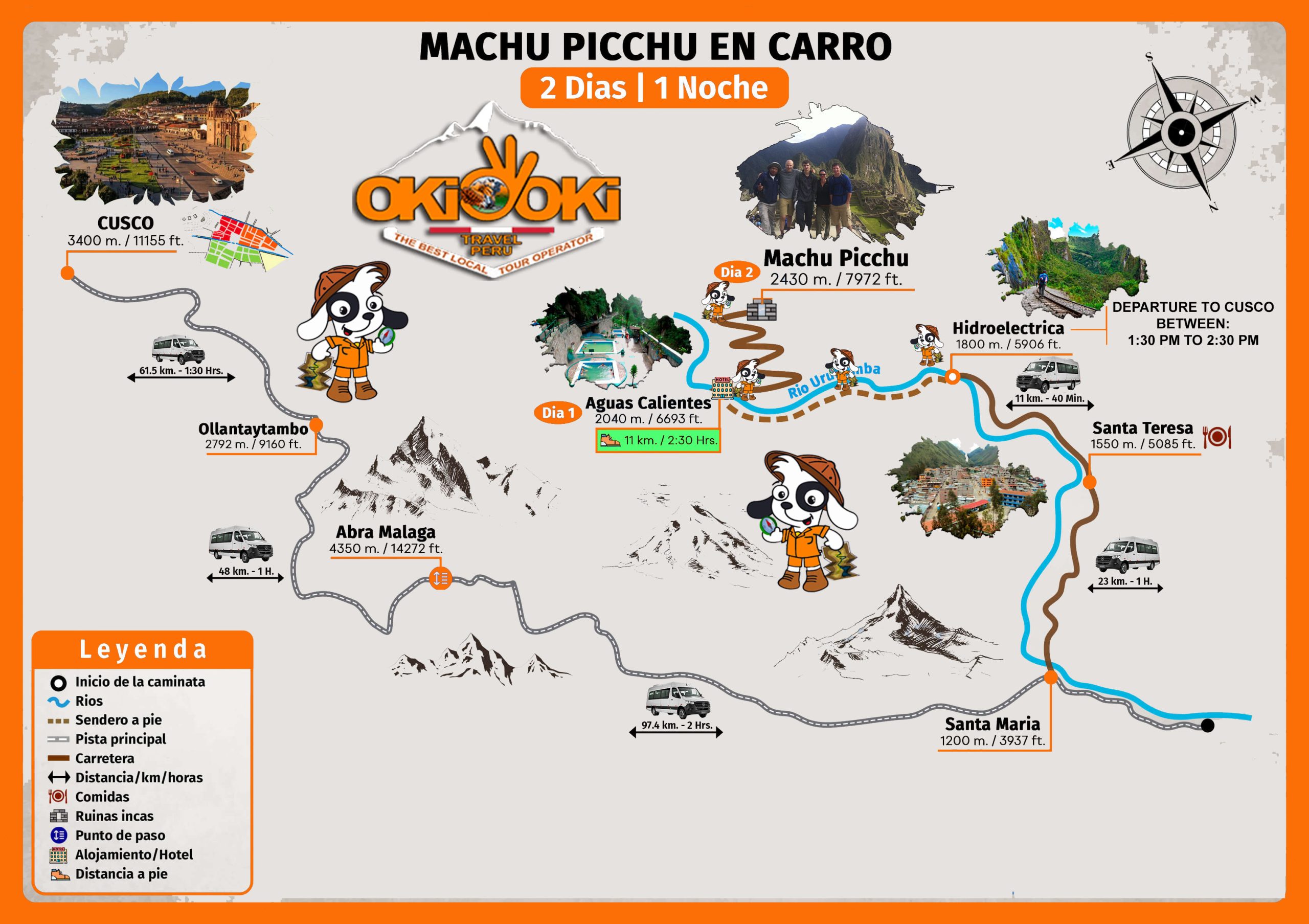 On the first day, we will pick you up early from your hostel between 6:10 a.m. and 6:30 a.m., depending on your exact location in Cusco. From there, we begin a scenic bus journey of approximately 7 hours to reach Hidroeléctrica.